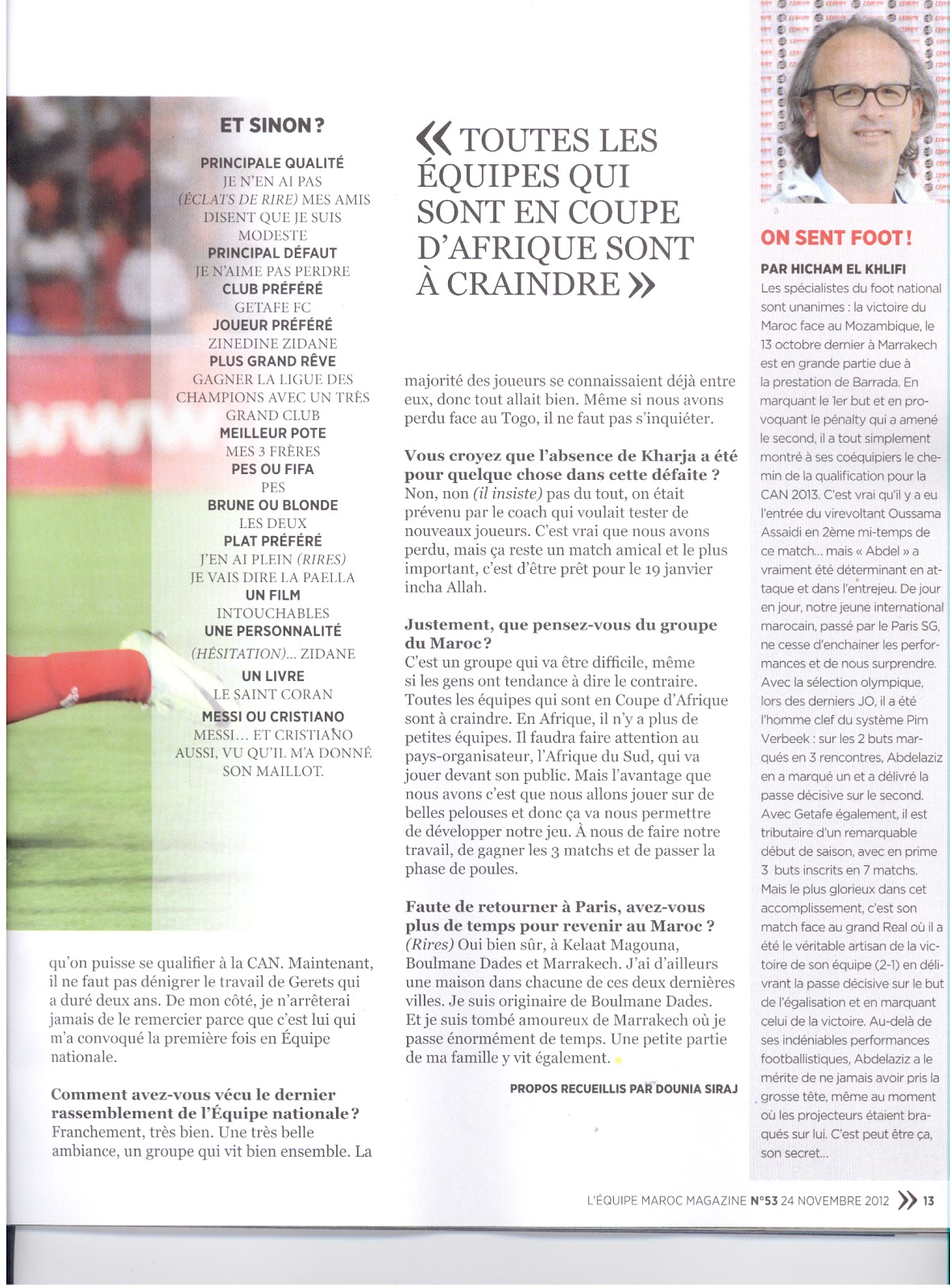 Entrevista de L'Equipe Maroc a Abdelaziz Barrada